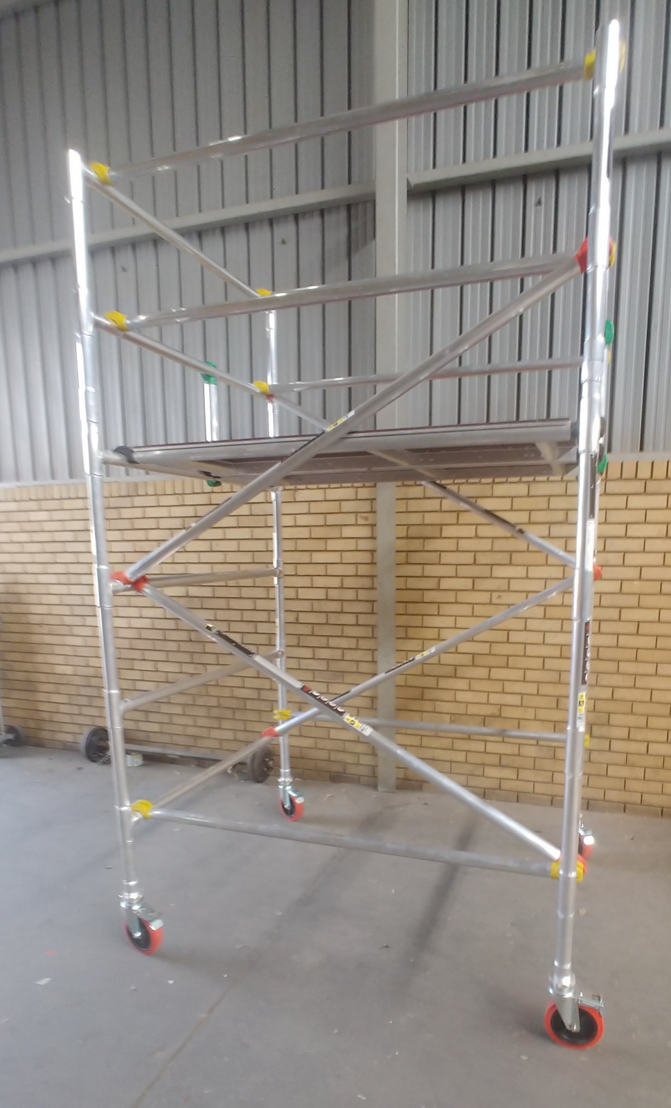 With this tower begin Aluminium The tower is light so transport and erection is a lot easier, These towers have quick hook on color coded hooks which assist you on erecting the tower correctly. Every Frame has a Floating Spigot this helps you guide each frame on each other with out bending the frames or damaging them, On the frames there is a welded T joint on every corner.